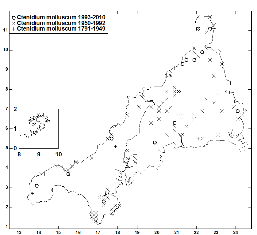undet.: (1) on steep old mortared-stone wall, part shaded by