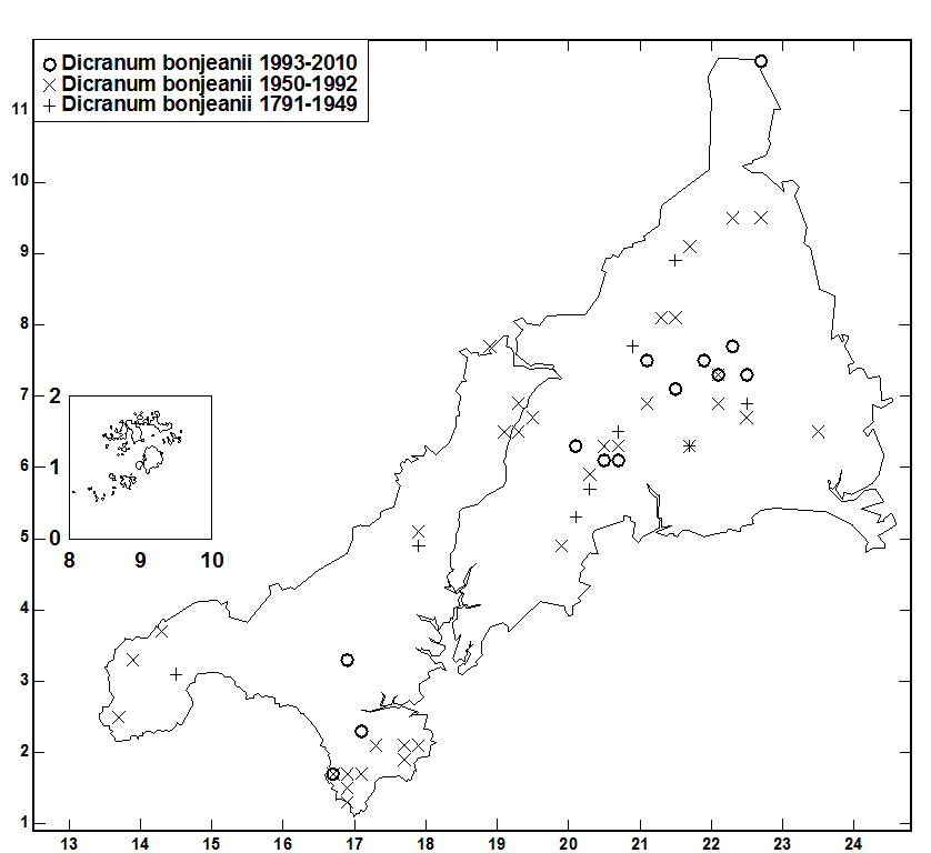 very rare in British Is., and unrecorded inCornwall).