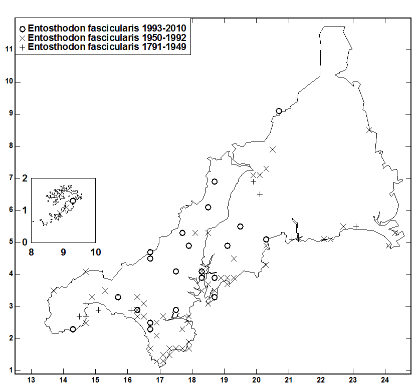 quarries. Associates recorded were Barbula convoluta, Bryum dichotomum, Bryum rubens, Bryum violaceum, Trichodon cylindricus,