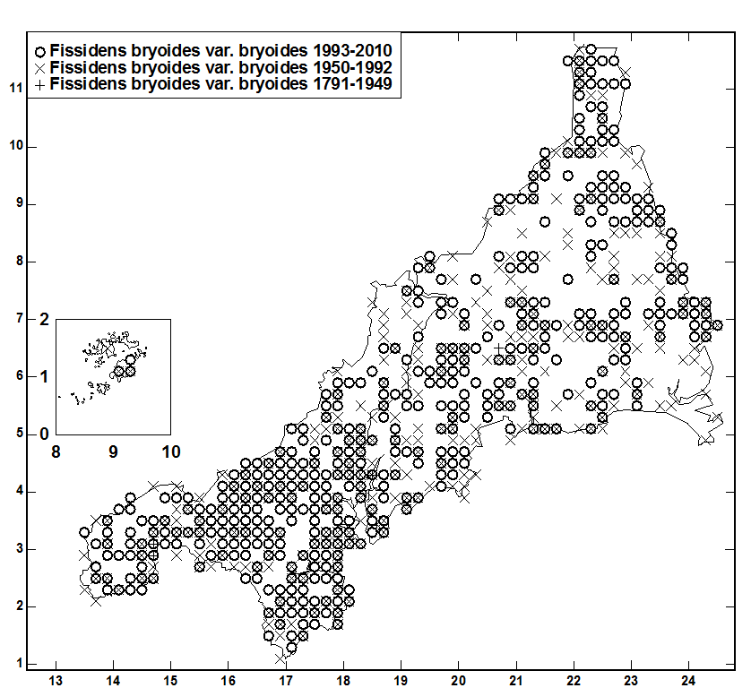 apparently connected by intermediates. However, F. bryoides var. bryoides is more widespread inCornwall