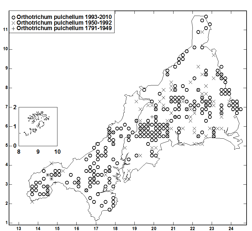 O. diaphanum, Ulota bruchii, U. crispa, U. phyllantha; less