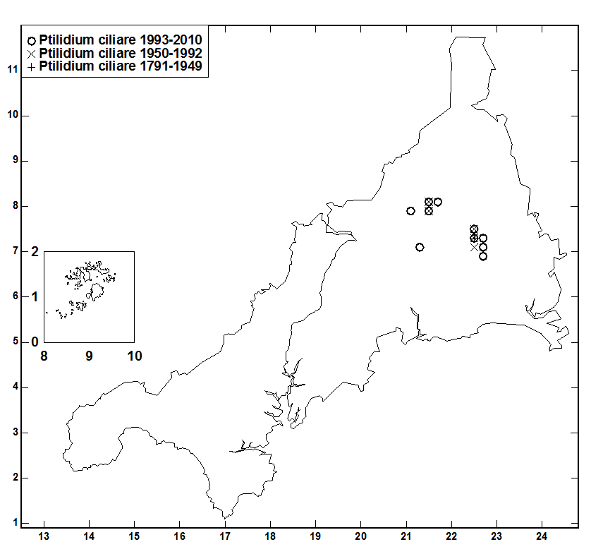 Bodmin Moor S. of Bowithick: with other bryophytes on edges of
