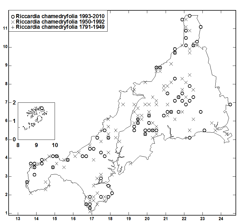sea-cliff. Flush on N.-facing sea-cliff (with Riccardia multifida).